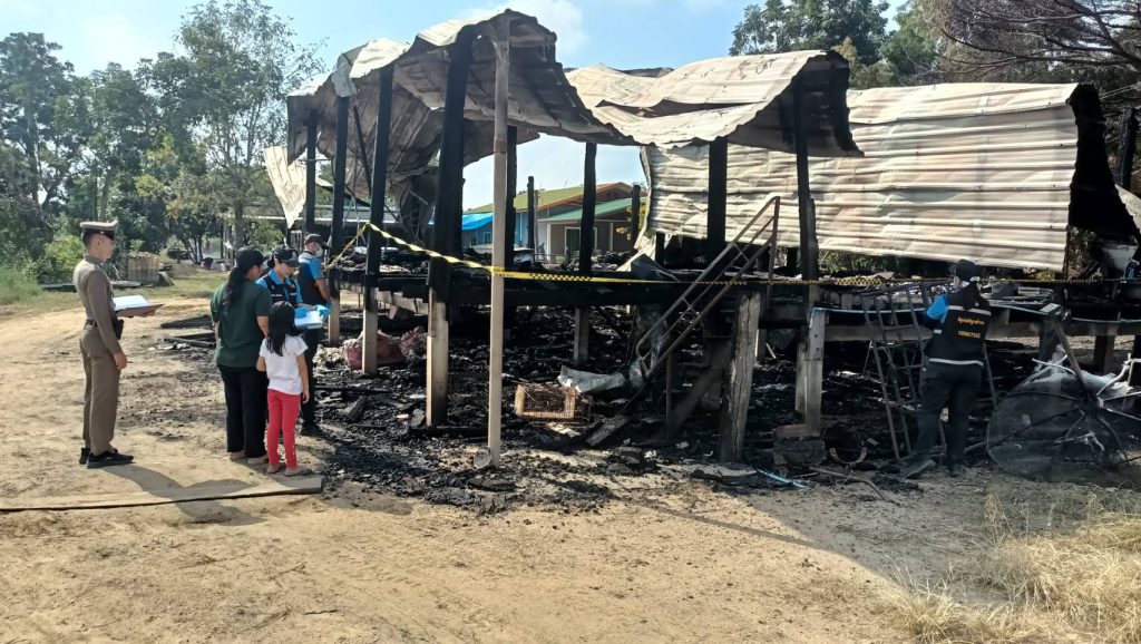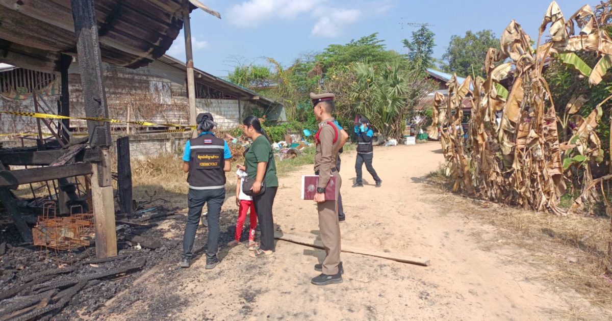 ร้อยเวรสอบสวน 30 ร่วมกับพิสูจน์หลักฐานตรวจสอบเหตุเพลิงใหม้บ้านเลขที่132ม.3ต.ไทรงาม อ.ไทรงาม จ.กำแพงเพชร