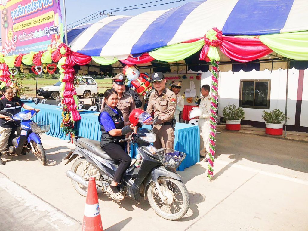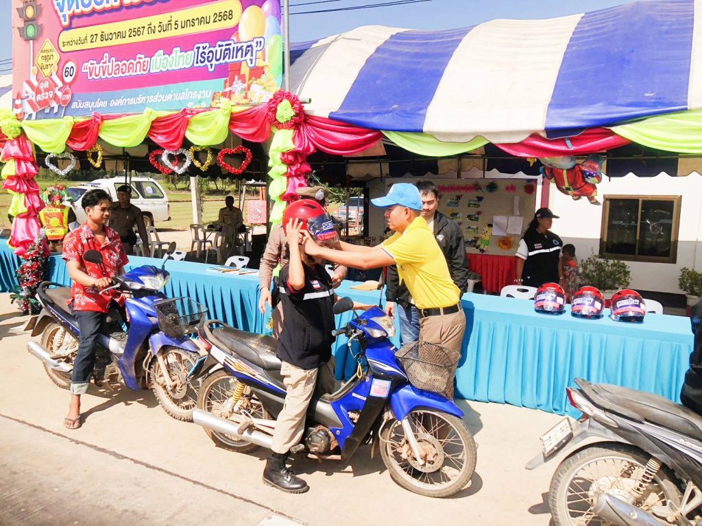 ภ.6 ภ.จว.กำแพงเพชร สภ.ไทรงาม วันนี้ (29 ธ.ค. 67) เวลา 13.00 น. พ.ต.อ.นิติคุณ ลี้ตระกูล ผกก.สภ.ไทรงาม พร้อมข้าราชการตำรวจชุดจิตอาสา สภ.ไทรงาม ฝ่ายปกครอง อ.ไทรงาม ประชาชนจิตอาสา ร่วมกิจกรรมประชาสัมพันธ์รณรงค์ลดอุบัติเหตุทางถนนช่วงเทศกาลปีใหม่ พ.ศ. 2568 พร้อมมอบหมวกนิรภัยให้กับผู้ใช้รถใช้ถนน ณ จุดบังคับใช้กฎหมายจุดที่ 1 ศูนย์ปฏิบัติการจราจร สภ.ไทรงาม