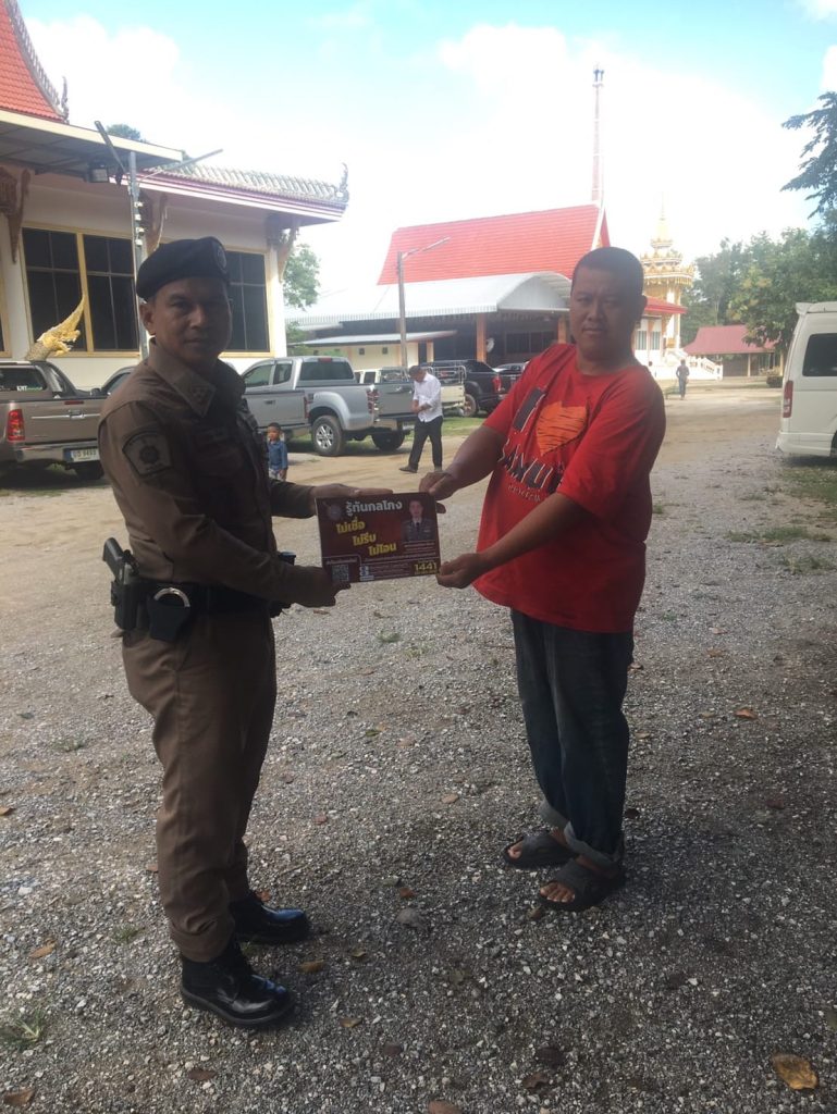 วันนี้(22 ต.ค.67) เวลา 09.30 น.ภายใต้การอำนวยการของ พ.ต.อ.นิติคุณ ลี้ตระกูลผกก.สภ.ไทรงาม , พ.ต.ท.ทยากร จันแก้วปง รอง ผกก.ป.สภ.ไทรงาม มอบหมายให้ ร้อยเวร20/สายตรวจรถยนต์ ออกประชาสัมพันธ์กลโกงออนไลน์ 18 ข้อ(ไม่เชื่อ ไม่รีบ ไม่โอน)และแนะนำให้ประชาชนและโหลดแอปฮูคอลในพื้นที่ต.หนองไม้กอง อ.ไทรงาม จ.กำแพงเพชร จึงเรียนมาเพื่อโปรดทราบ
