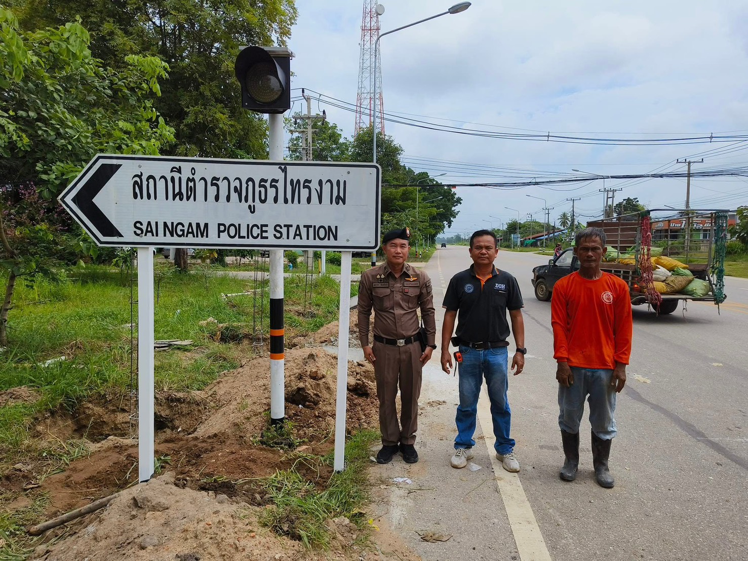 ติดตั้งป้ายทางเข้าสถานีตำรวจภูธรไทรงามฝั่งทางเข้าอำเภอไทรงาม